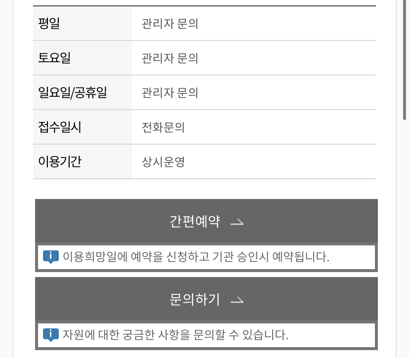 온라인 예약을 못하시는 사용자를 위하여 현장 방문 시 관리자가 예약 등록을 도와드립니다.