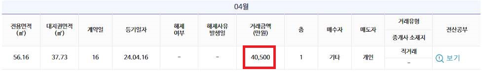 다음과 같이 원하는 빌라의 거래금액을 확인하실 수 있습니다.