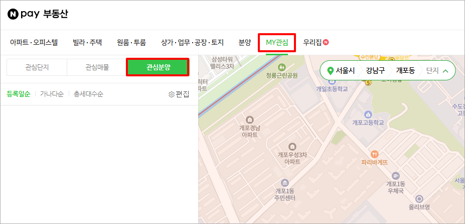 관심 분양 단지 확인 방법