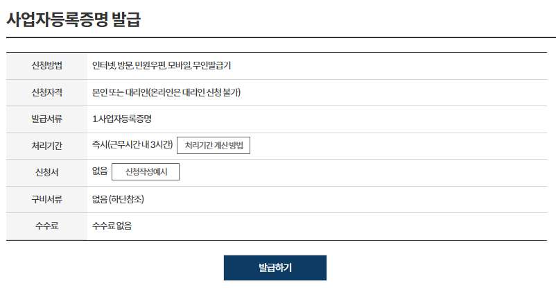 사업자등록증 사본 출력 바로가기